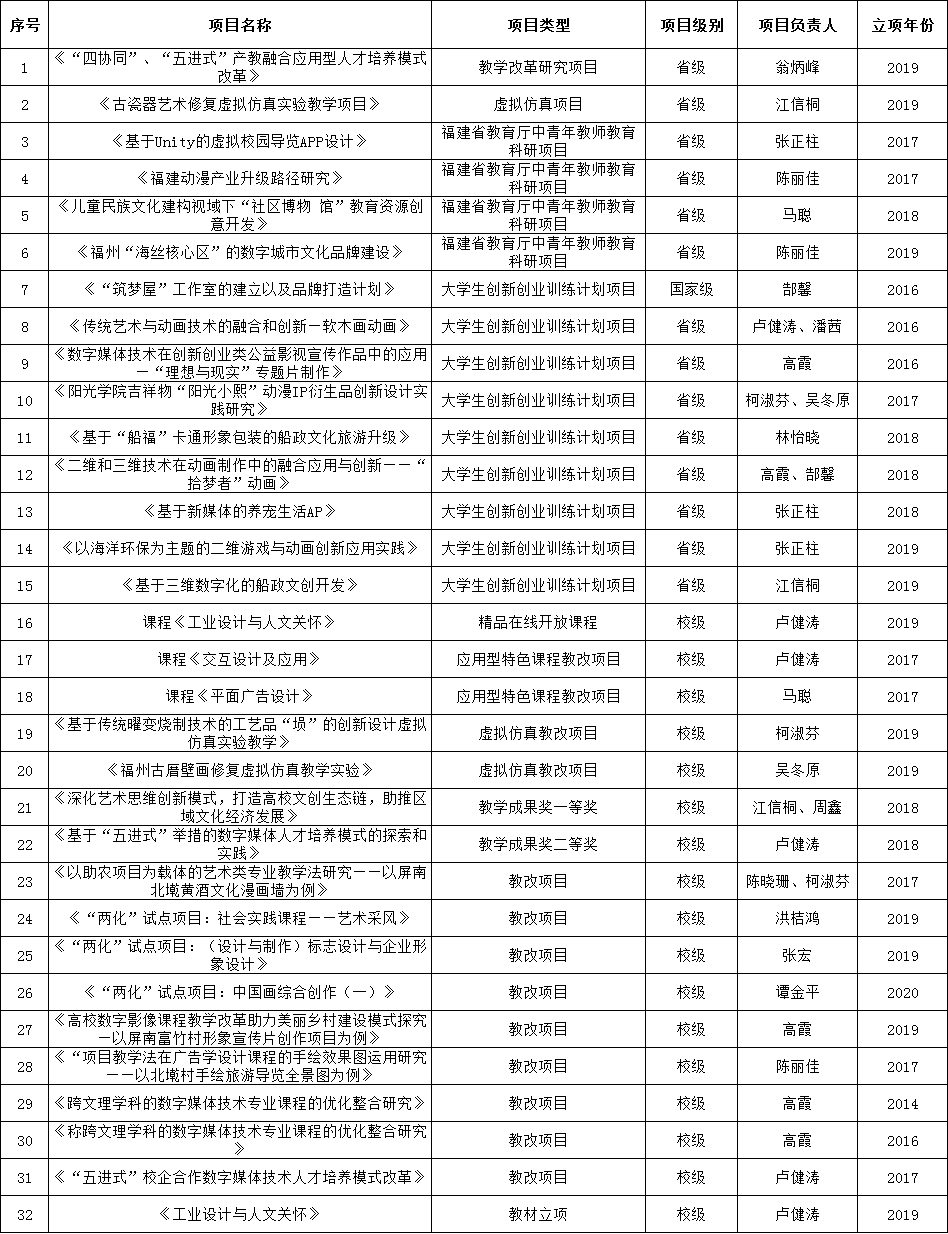 设计公司教师承担教改项目一览表