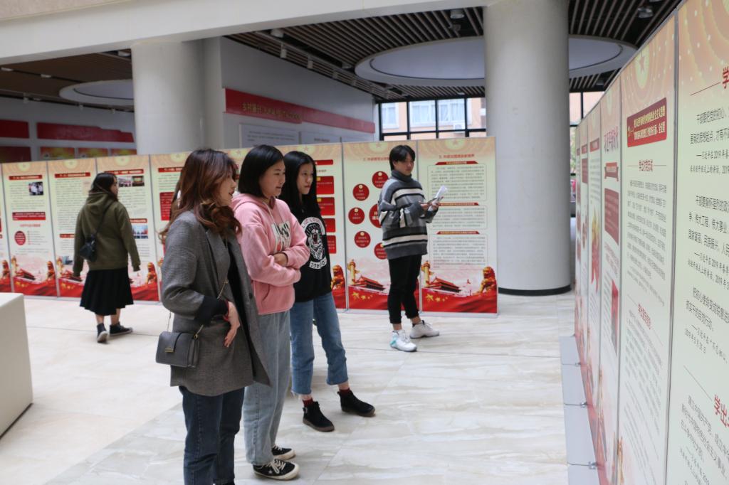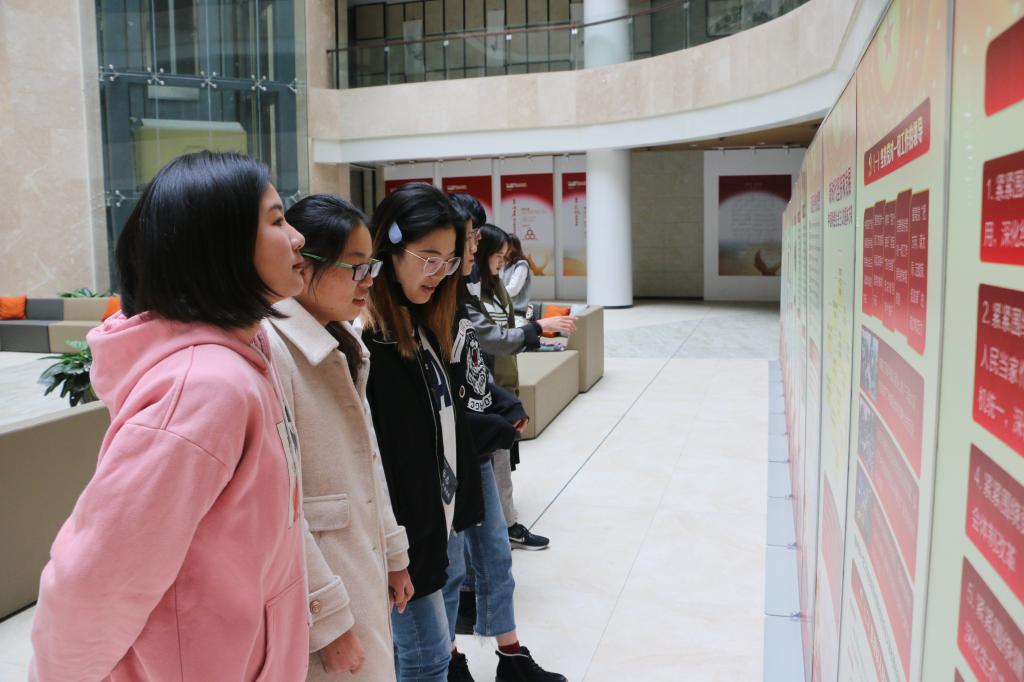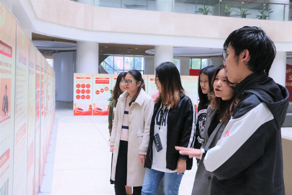 11月20日下午,设计公司员工党支部在PA视讯官网行政楼大厅观看了福州市委市直机关工委制作的“习近平新时代中国特色社会主义思想”主题展板,设计公司员工党支部书记林铭浩、兼职辅导员吴文佳及全体员工党员到场参观学习。