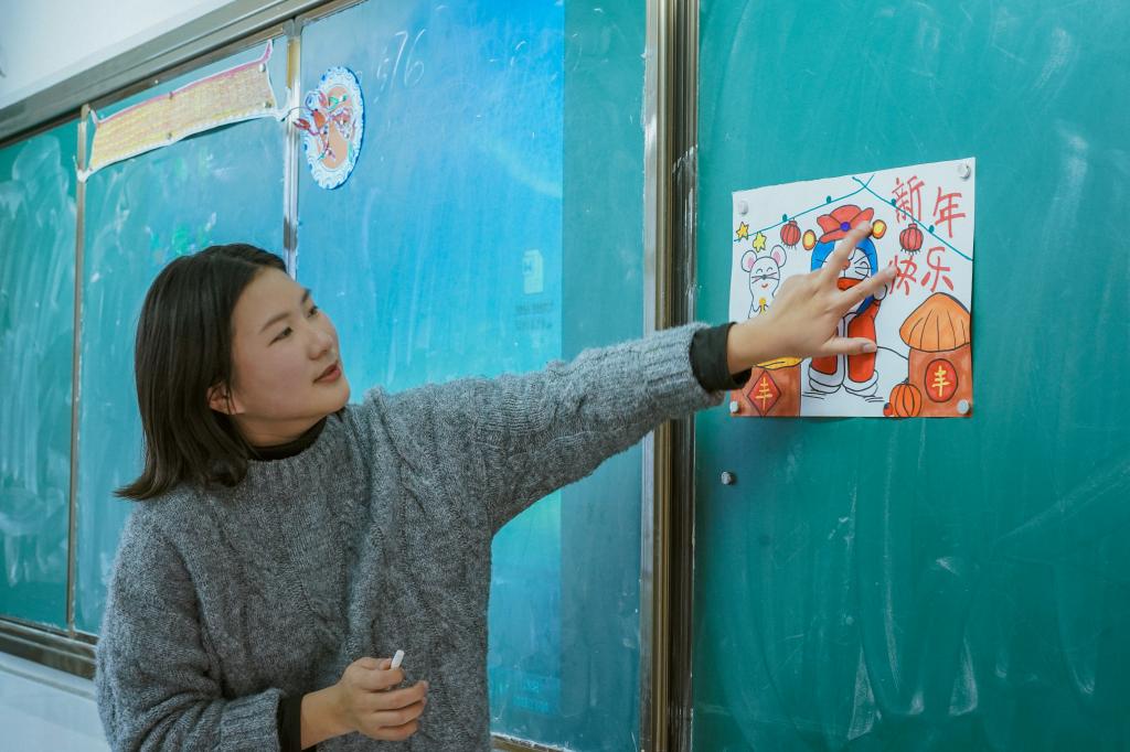 在志愿服务过程中,设计公司志愿师生与亭江第二中心小学的员工们友好相处,温情相融。开场生动有趣的自我介绍,迅速拉近志愿师生与孩子们之间的距离。设计公司志愿师生选择即将来临的元旦节作为课前引导,以“新年快乐”为主题,由洪珍妮同学主讲,对“新年愿望”“新年寓意”“新年祝福”等元素进行创意绘画教学。吴文佳老师与陈思婷同学在教学过程中时刻留意小员工们的创新想法,进行建议,帮助完善。张梓杰同学通过相机记录全部活动过程,为这起志愿服务活动留下重要的影像资料。