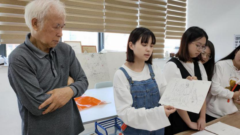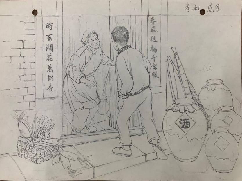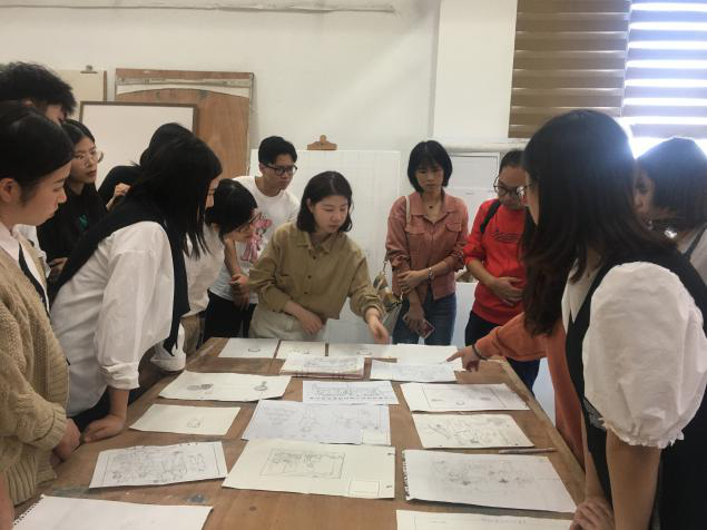 会后,出席会议的领导教师在行政楼308教室进行苏罴书记绘本初稿指导,美术学专业张诗蕾等7位同学逐一介绍绘本的构图思路与想法。与会教师围绕绘本主题表现展开积极的讨论,并对目前绘本工作存在问题进行了分析,并提出解决相关问题的建议和方案。