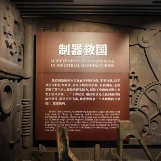 中国船政博物馆为中国第一个以船政文化为主题的博物馆,该馆共有五层,从一到五,分别从船政概要、学堂教育、产业发展、重大海战、海军建设等方面向人们展现了我国船政文化的发展史,呈现了以“精忠报国、自强不息”为主题的船政文化。