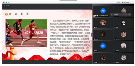 林绍捷:此次半月谈我们学习了2022感动中国十大人物中的苏炳添和杨振宁。苏炳添是继刘翔之后的又一个中国飞人,他以9秒99的成绩翻开了中国田径历史性的篇章。苏炳添,一个从泥巴里跑出来的飞人,在他成为运动员时,也一度险些放弃,但他最终还是坚持了下来,创造了“中国速度”;杨振宁,诺贝尔物理学奖获得者,秉持着伟人为祖国为人民服务的宗旨继续为中美交流事业出力,虽然他离开了这个世界,但是留下了太多值得我们学习的东西。