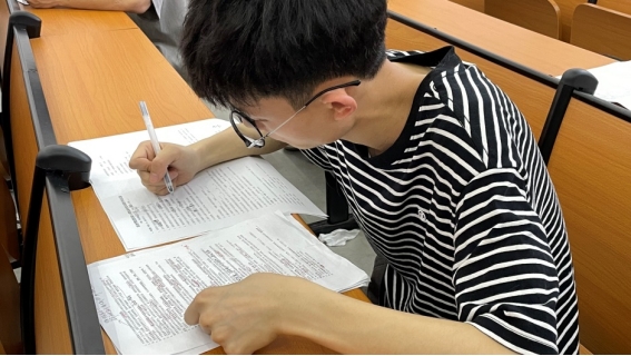 积极分子们答卷整洁,写满试题纸,将近期党课教授内容和自主学习内容整合归一,信心满满,用实际行动向组织交了一份满意的答卷。监考人员在检查清点完试卷份数后,大家有序离开考场,展现出良好的考试风气。
