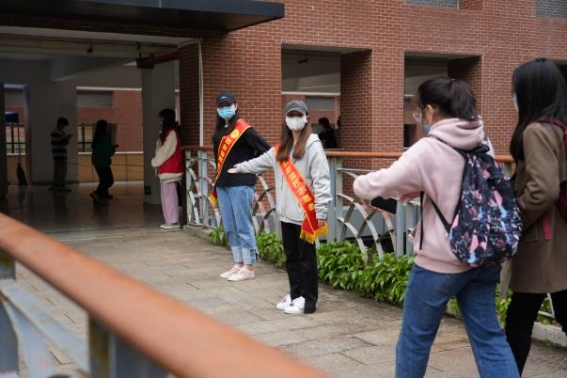 为有效避免人员聚集,所有师生严格遵守疫情防控相关规定,候检排队保持1米间距、整齐有序地沿指定路线等候检测。做到不近距离接触,不扎堆,积极主动配合核酸检测工作。
