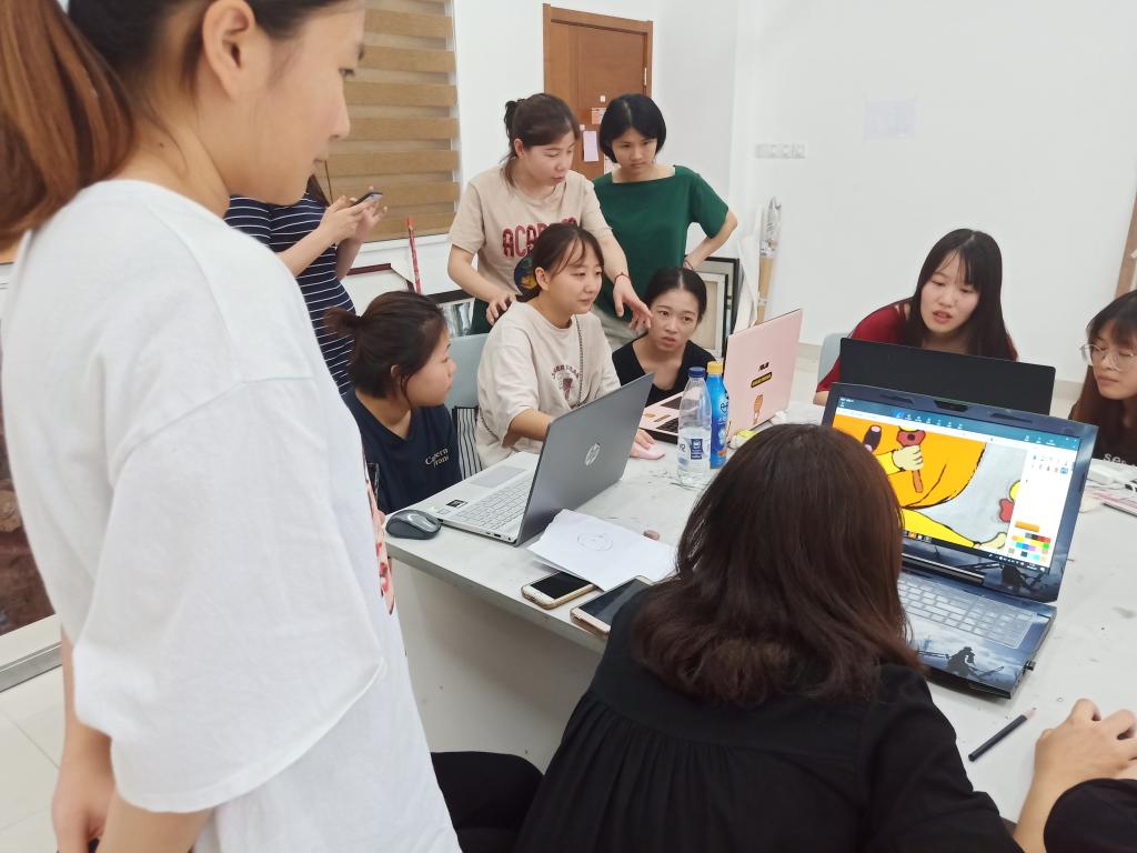 动员大会:6月20日,艺术系暑期社会实践指导工作在文东实验楼102教室展开,会议由陈晓珊老师、郑凯明老师主持,这次会议的目的是要确定果蔬漫画墙的主题,以及果蔬的品种、各个果蔬形象的初稿设计。经过老师和各个同学的反复商量和不断调整,最终确定了漫画墙的主题是仕洋村果蔬音乐节以及各个卡通人物的动漫,确定果蔬的主体人物为花菜,次要人物分别是茄子、青椒、南瓜、黄瓜、四季豆、西红柿。