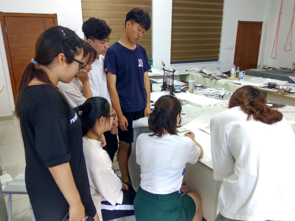 到达仕洋村。7月13日,全体参与人员到达屏南仕洋村。整理好东西吃完饭,郑凯明老师对接下来的墙面绘制进行工作的分配,以及后勤保障工作的分配。大家到达后也没有放松,立刻投入了工作,我们对画稿进行了基本的戳孔,为明天的上墙做准备,大家对仕洋村的环境非常满意,空气清新,环境优美。对这次的暑期实践充满了期待以及完美完成的决心。