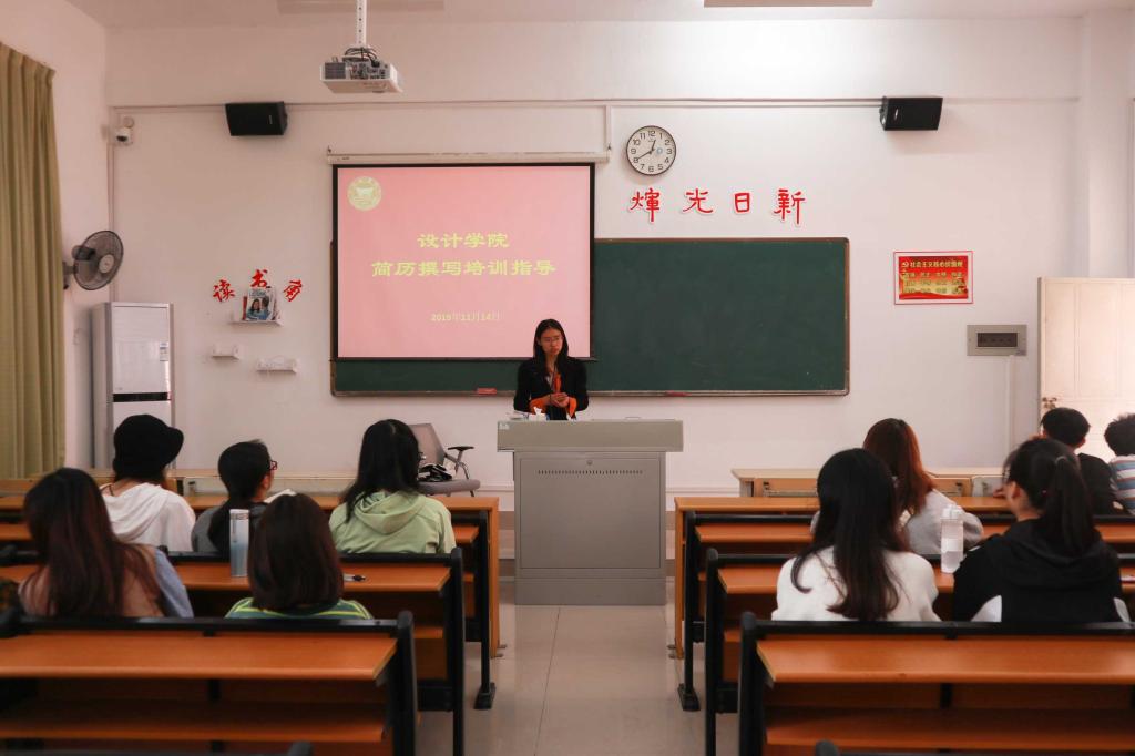为了保证参赛选手简历的质量以及“简历制作大赛”的顺利进行,设计公司员工会于2019年11月14日中午12:30在工A311教室开展“简历制作大赛赛前培训”,培训会由经验丰富的职业生涯规划讲师吴其枝老师主讲。