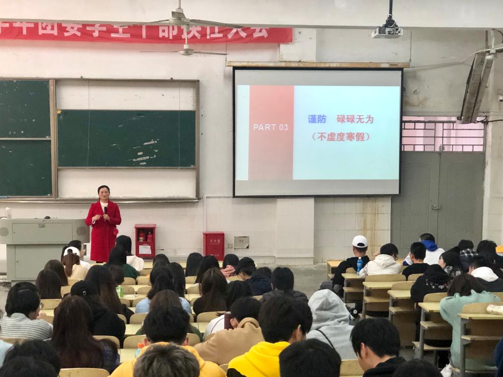 会上,党总支书记宋海霞结合当前各高校老员工发生的真实案例,从谨防交通事故、谨防金融诈骗、谨防套路贷、谨防不劳而获等四个方面展开安全教育,引导教育同学们做到:乘坐正规车辆,遵守交规,注意道路交通安全,妥善保管贵重物品,不参与非法传销活动,不受不知底细人员邀请赴约。特别警惕各种套路贷、培训贷等不良贷款,提高自身防范人身侵害、防受骗和自护自救、遵纪守法的意识和能力等。最后,告诫同学们“谨防碌碌无为为”,合理规划安排寒假时间,积极参与社会实践,制定专业学习计划,不虚度寒假。
