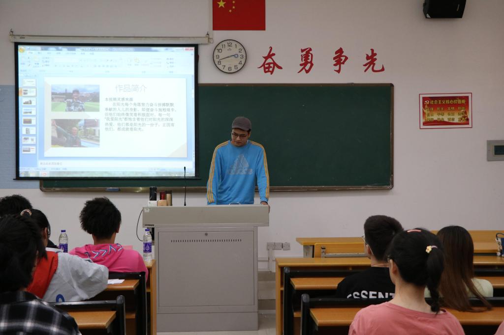 比赛过程中,选手们向评委和观众展示了一份份优秀作品主题,并激情的展示自己的作品赢得阵阵掌声。最后,邓微宾老师对本次决赛进行点评,她充分的肯定各位选手的优异表现,并从选手们的作品选题、材料撰写、作品创作过程及作品质量四个方面进行点评,她希望选手们能更好地发挥自己的特色并结合更多样化的形式进行设计创作。经过激烈的角逐,来自2019级数字媒体技术专业1班罗兴衡的作品《绿荫少年,奋斗不懈》,讲述20级新生在绿荫场上不懈奋斗、挥洒汗水、流下热泪的最后一次军训,获得本次决赛一等奖。