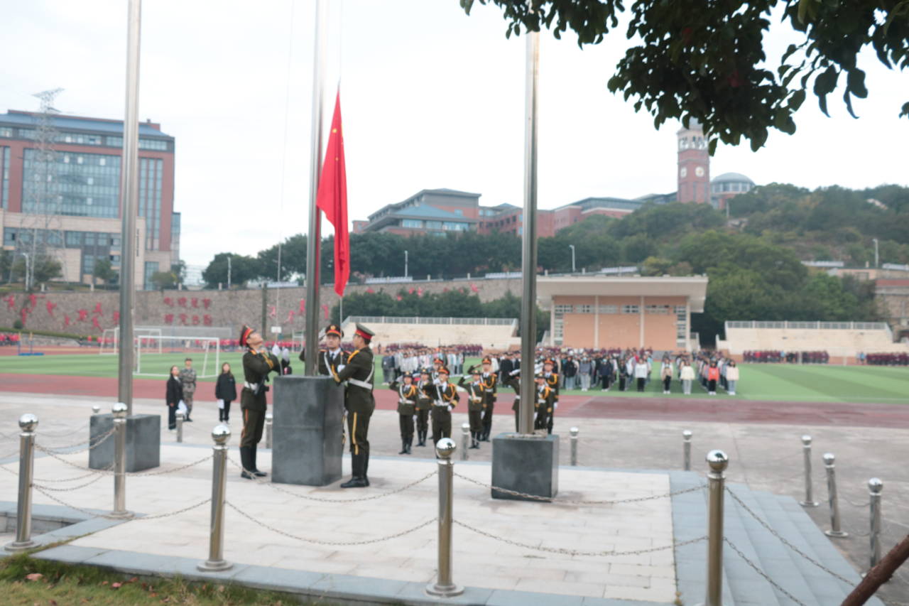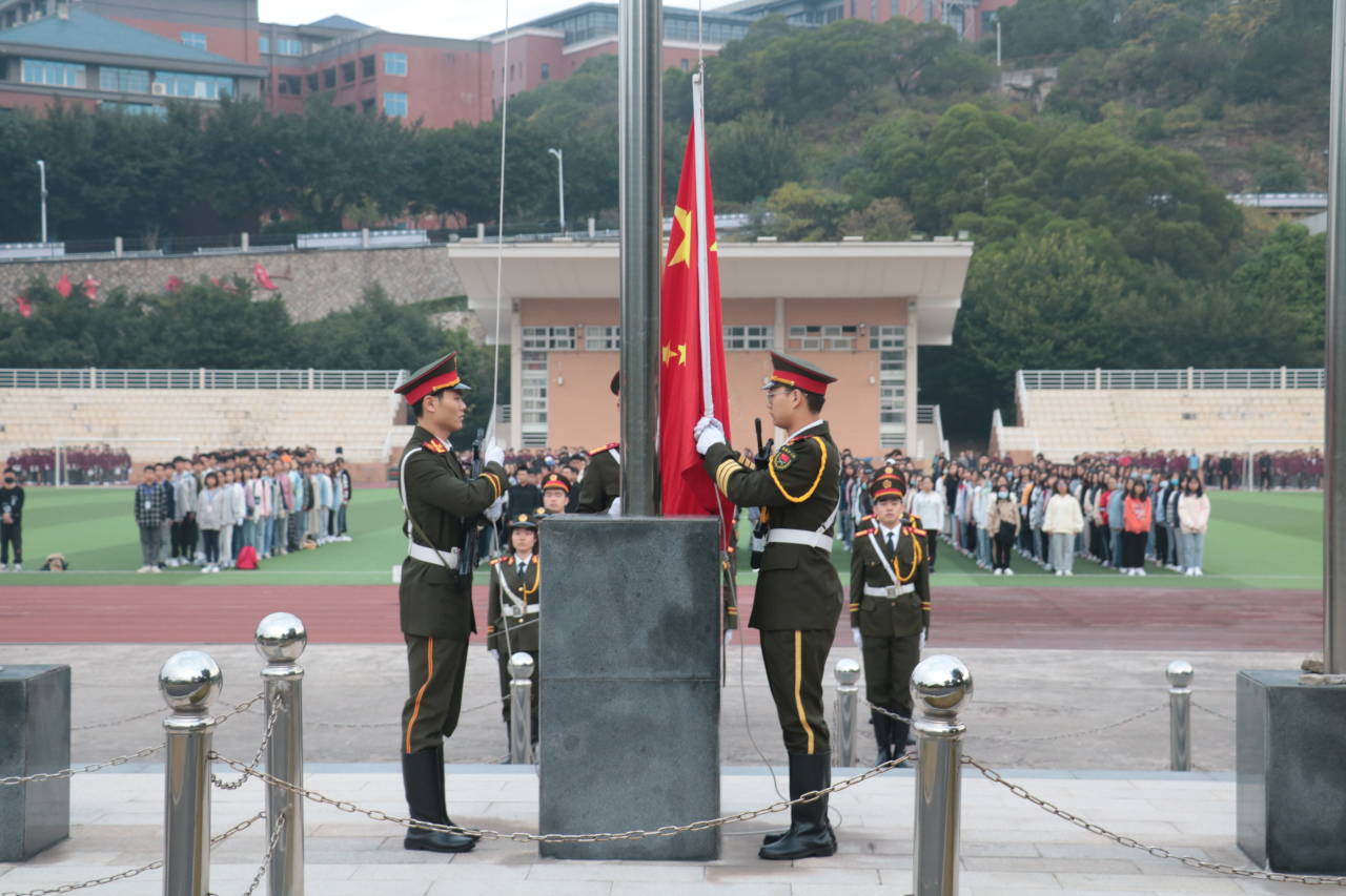 少年的肩应该担起草长莺飞和清风明月,中华复兴吾辈义不容辞。为激励同学们爱国热情奋发图强,勇于担当当代青年的神圣使命,设计公司、儿童发展与教育公司全体2020级新生于11月16日早上6:30在东区操场参加升旗仪式。