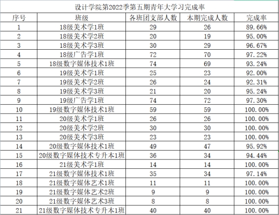 本周是共青团员进行第十三季第五期青年大学习,接下来看看设计公司各班级的完成情况吧。