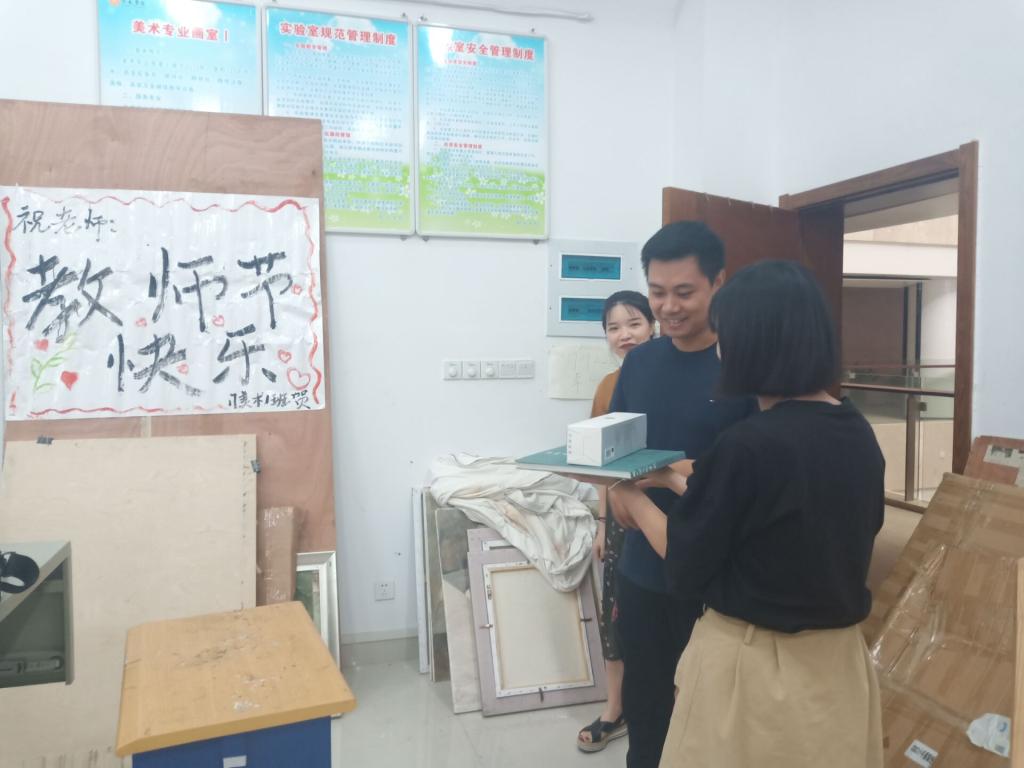 设计公司团委员工会为每位老师送上印有设计公司字样及全院教职工合影的爱心抱枕。三尺讲台育桃李,师生情会随着时间的流逝一直蔓延。“饮其流者怀其源,学其成时念吾师”,希望每位同学能够以满腔的热情投入到新学年的工作与学习中去,不负韶华是对老师最好的回馈。