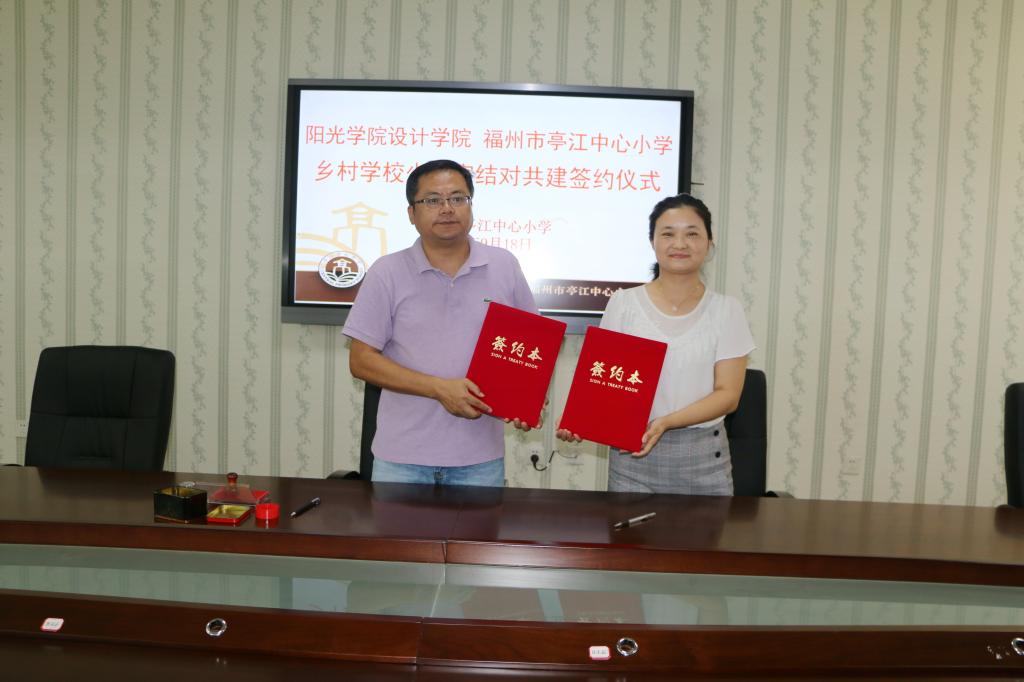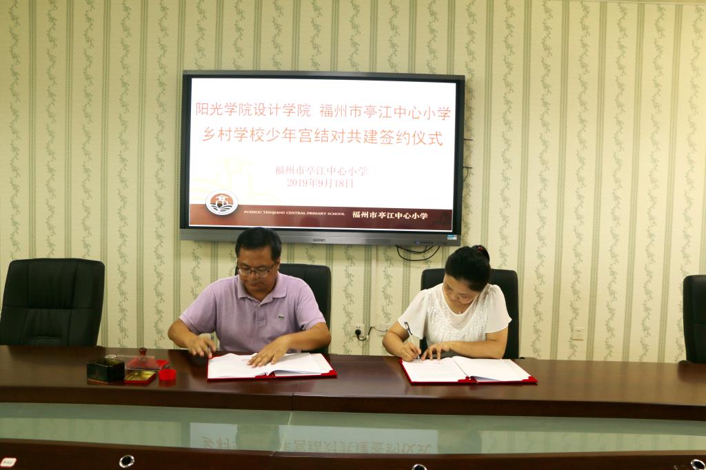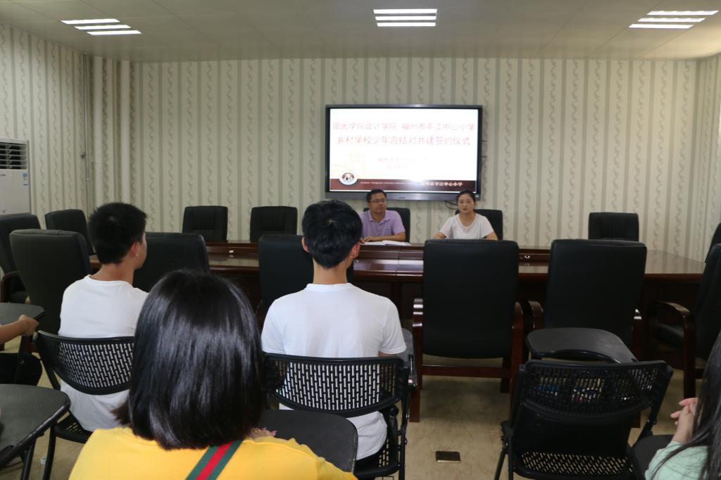 9月18日下午,双方在福州亭江中心小学会议室举行结对共建签约仪式,设计公司党总支书记宋海霞与亭江中心小学董事长叶辉签订了《2019-2020年度福州市文明校园与乡村公司少年宫结对共建协议书》。双方在团队培训、项目辅导、活动联办等方面打成共识。座谈会上,双方共同表示:做为结对共建校,要加强联系,增进感情;加强协作,注重实效,活动形式多样化。支教志愿者要以此次支教活动为契机,拓展职业技能同时促进乡村公司少年宫更好地实现“以乐促智、以技促能、以德育人”目标。
