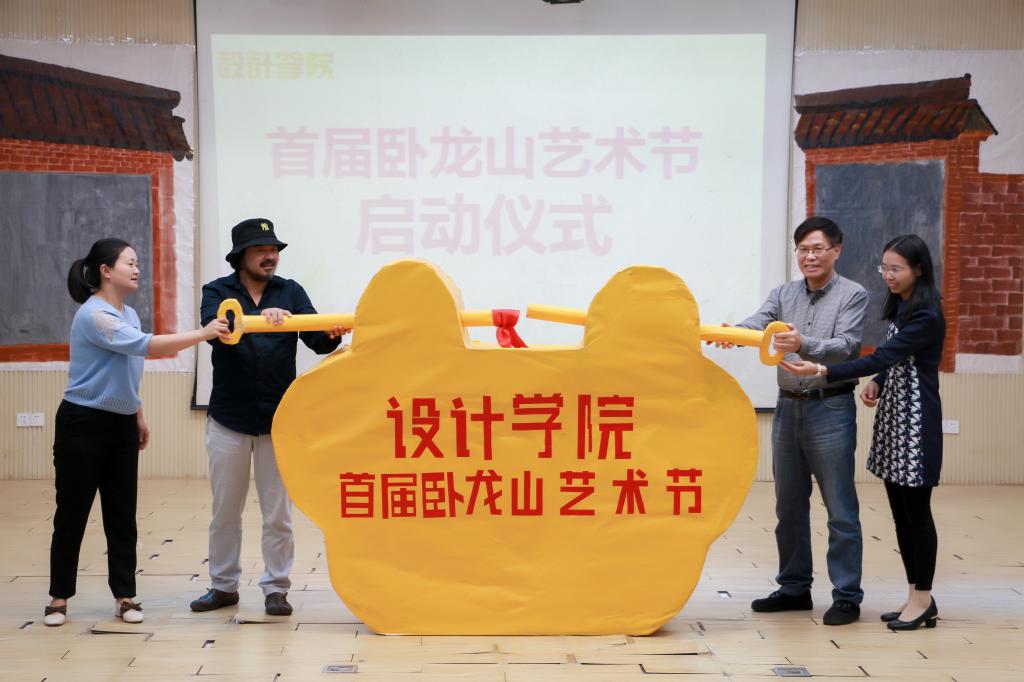翁炳峰教授、卢健涛副教授、党总支书记宋海霞、团委书记吴其枝共同开启了卧龙山艺术节之“锁”,意蕴设计公司首届“卧龙山艺术节”正式开幕。