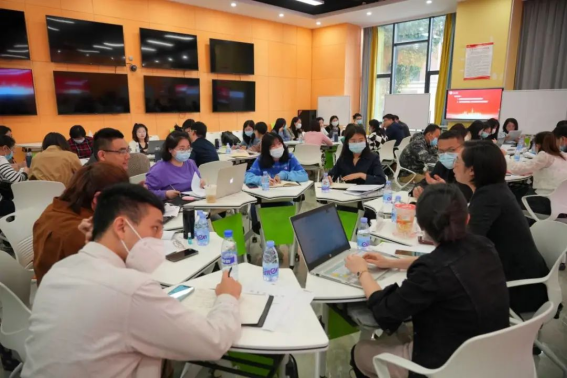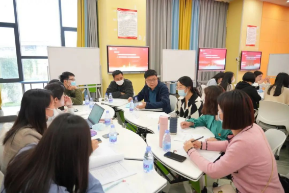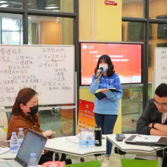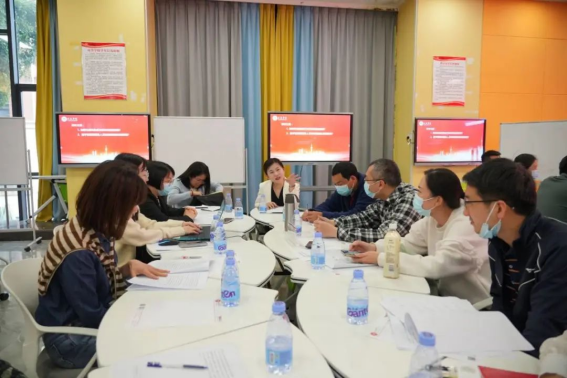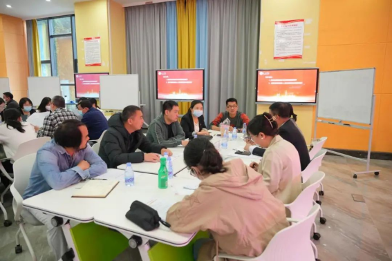 全体与会教职工分为六个小组,在组长、副组长的组织下展开热烈研讨。结合公司及专业实际情况,围绕“如何快速转型成为双师双能型教师”及“教学管理和服务人员如何赋能应用型建设”两个问题,与会人员进行了深入研讨,现场氛围十分热烈。