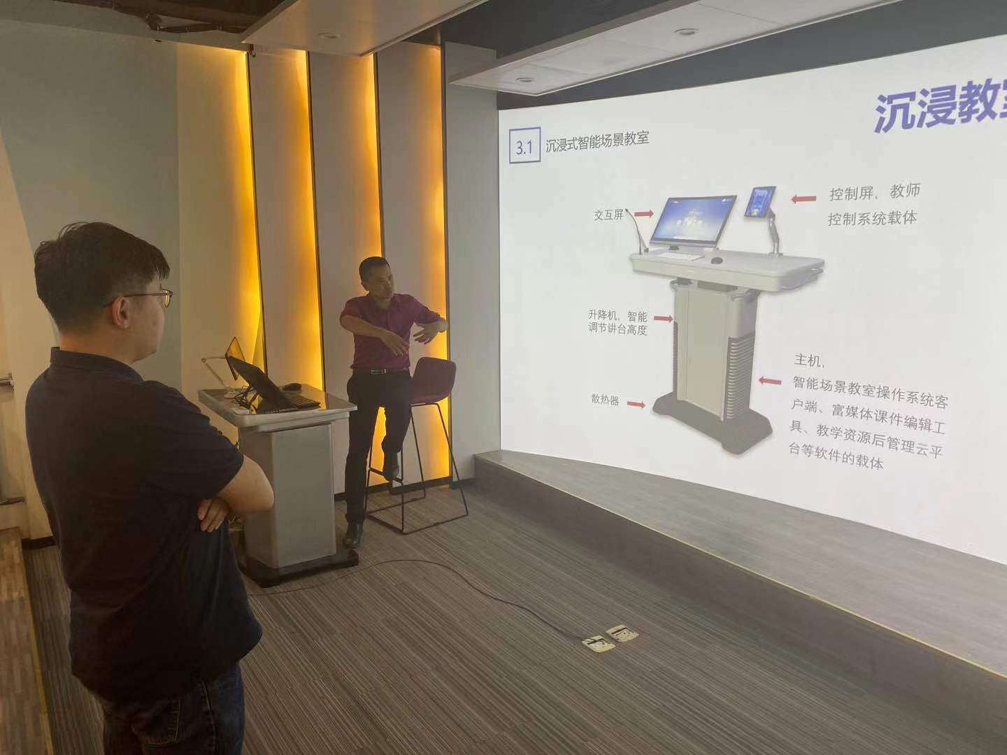11月1日下午,设计公司分管教学的经理助理江信桐带专业教师张宏赴爱果冻科技福建基地开展教学调研活动,受到爱果冻科技领导的热情接待,现场详细介绍了爱果冻科技自主研发的虚拟仿真教学方面体系化解决方案、以及演示诸多成熟应用案例。