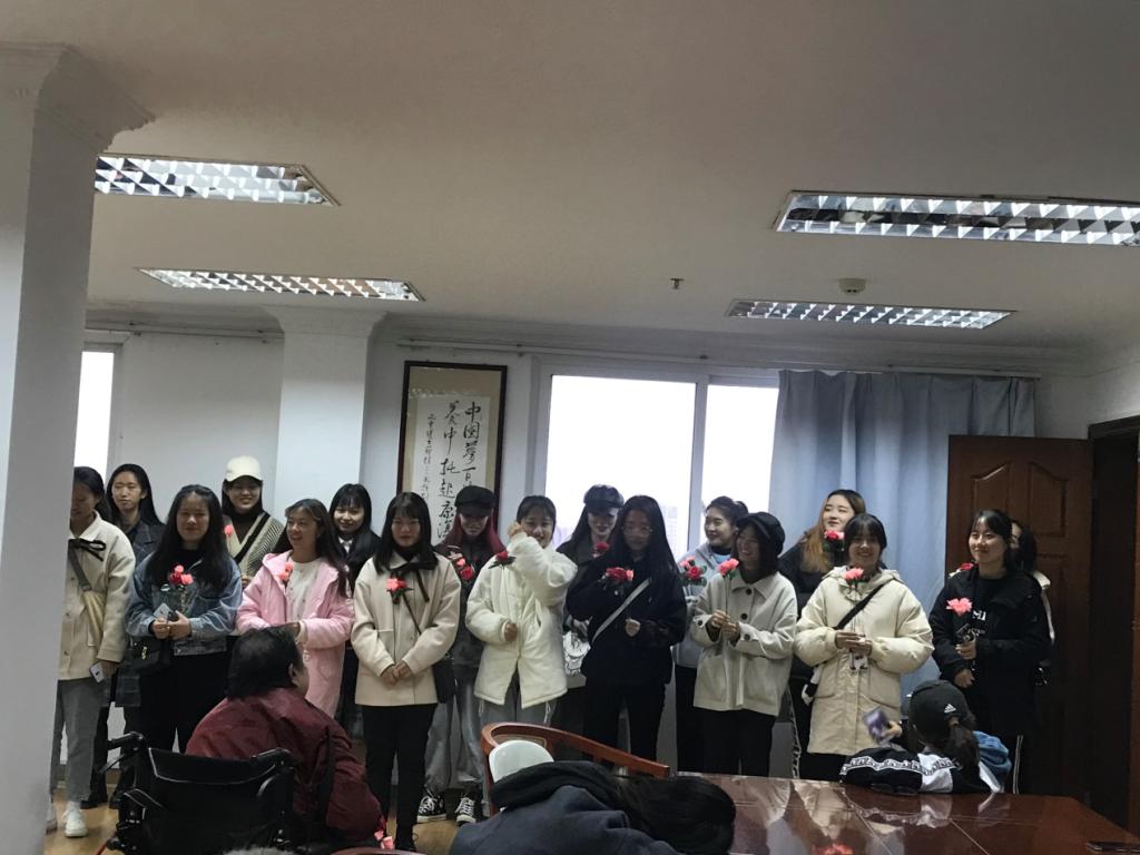 此次活动分为三小组,手工组同学提前制作了纸玫瑰,精心包扎后送给老人们;合唱队同学准备了优美的合唱歌曲《鲁冰花》《同一首歌》《我和我的祖国》,为老人们送上动听的旋律;聊天组同学则进入各个房间,同爷爷奶奶们话家常。同学们积极参与,认真配合,此次志愿活动圆满结束。