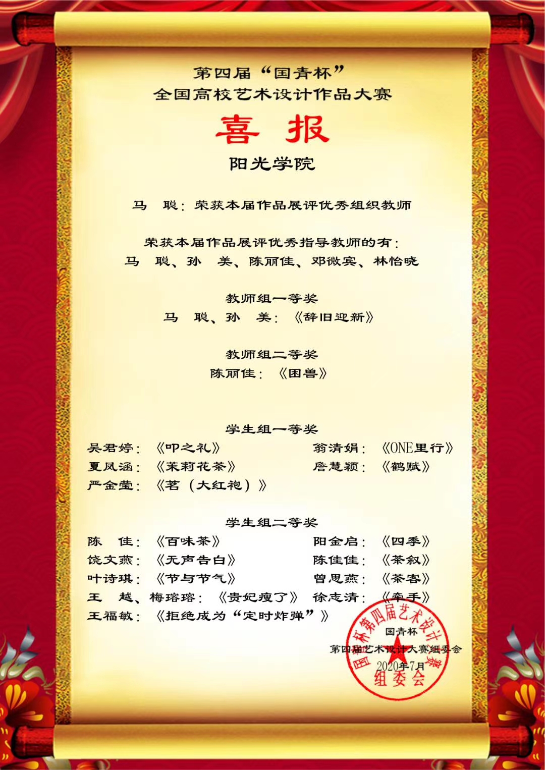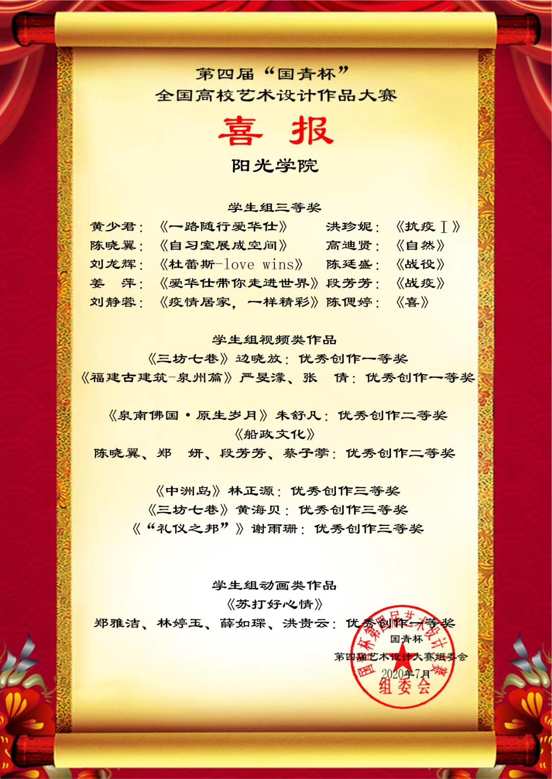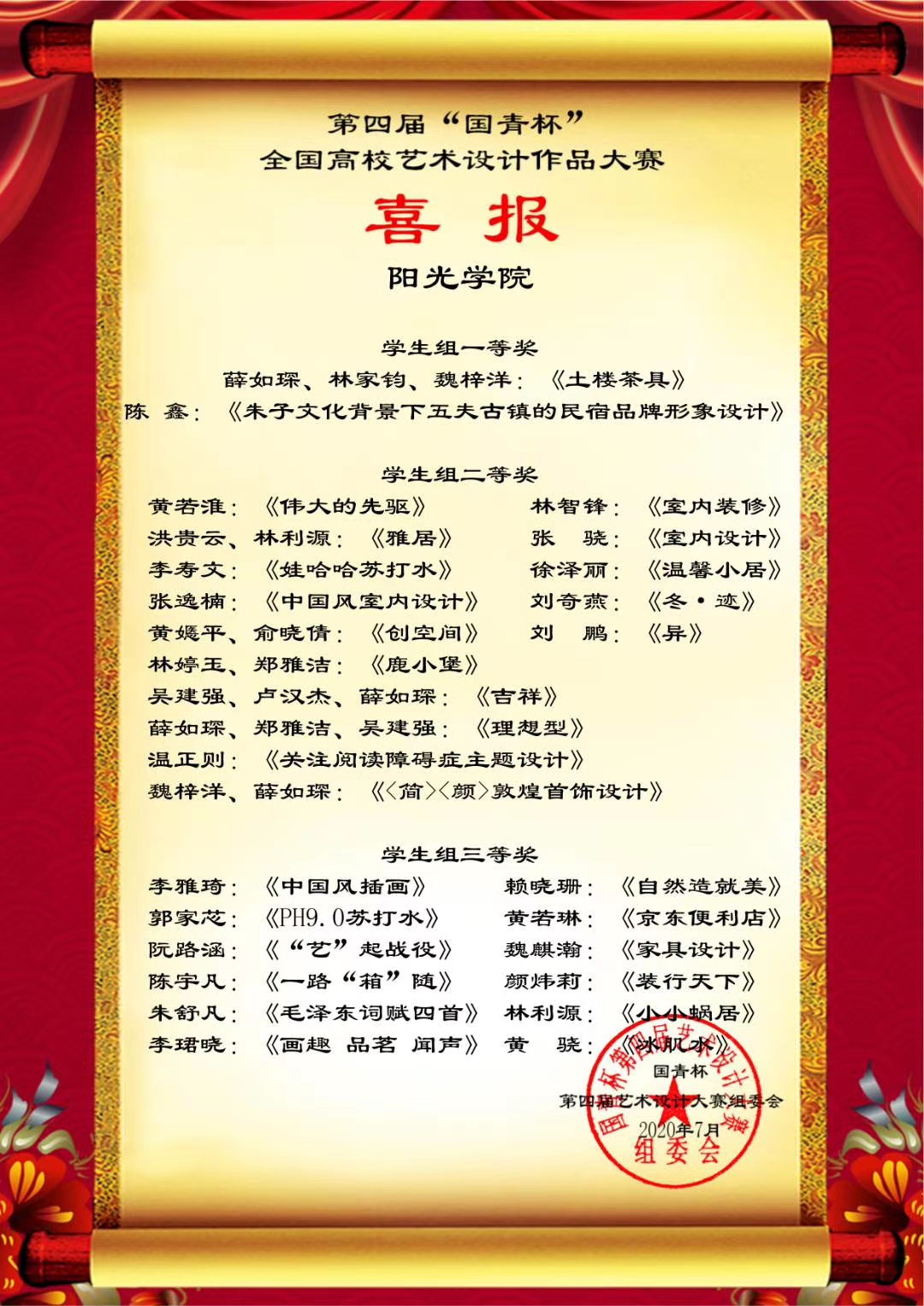 日前,第四届“国青杯”全国高校艺术设计作品大赛结果公布,设计公司师生在评展中荣获多项等级奖。此次线上获奖将获得参加由国青创新教育管理集团、澳门国青商公司等单位主办、承办的第六届中国企业形象建设年会的资格。