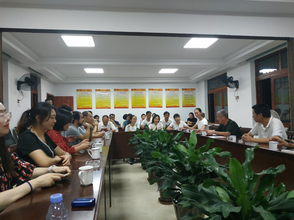 晚上,召开了座谈会交流会,南岩村党支部王铃华书记对公司领导、教师的到来表示非常欢迎。随后,围绕乡村振兴展开讨论。设计公司翁炳峰经理认为:“南岩村环境宜人,有文化底蕴,适合员工开展假期社会实践,我们每年至少可安排一批(次)员工到南岩进行美术写生实践。”翁经理指出,一村要有一品牌,南岩手工洗护用品需要有文化内涵、有自己的品牌和规模化的生产,公司可以在产品品牌设计包装等方面给予帮助。