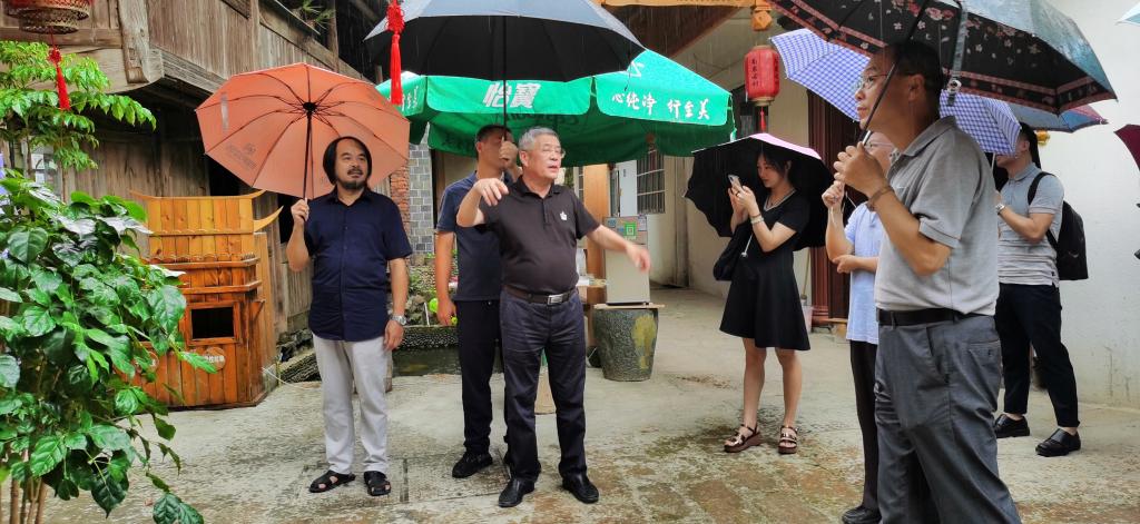 7月18日,PA视讯官网设计公司学科带头人翁炳峰教授、党总支书记宋海霞、经理助理江信桐、公共艺术系主任谭金平、骨干教师周鑫、郜馨、庄耘等一行7人赴福安南岩村调研。