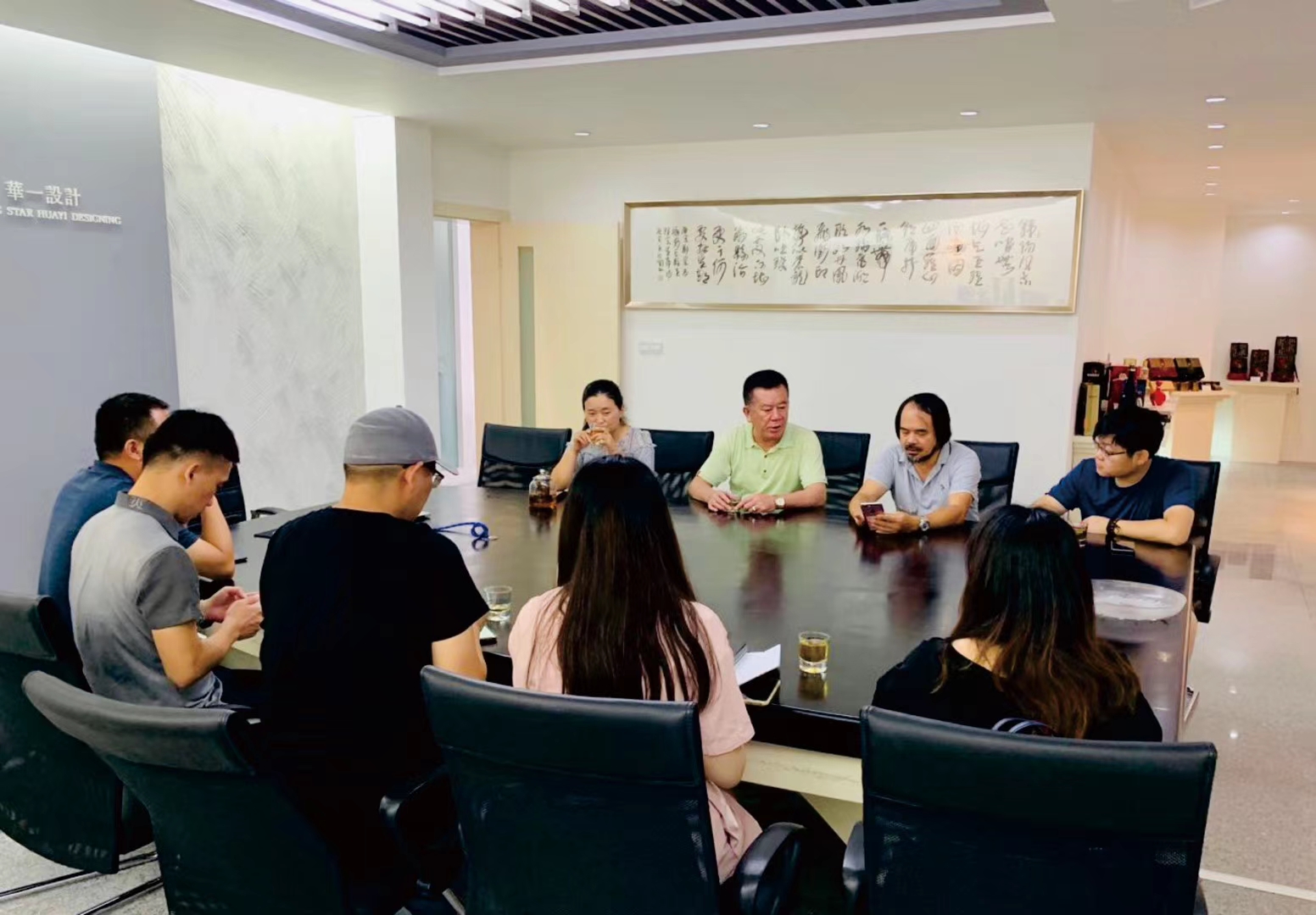7月19日,PA视讯官网设计公司学科带头人翁炳峰教授、党总支书记宋海霞、经理助理江信桐、公共艺术系主任谭金平、骨干教师周鑫、郜馨、庄耘等一行7人赴华一设计有限公司调研,受到华一设计创始人陈缪华先生的热情接待。