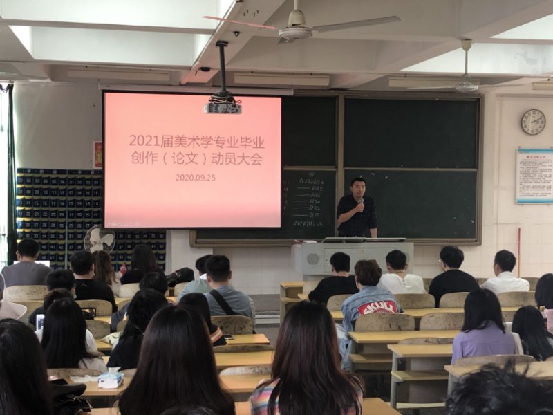 9月25日下午,设计公司美术学专业2021届毕业创作(论文)动员大会在文科楼105召开,毕业创作指导教师及全体毕业生参加了会议,会议由公共艺术系主任谭金平老师主持。