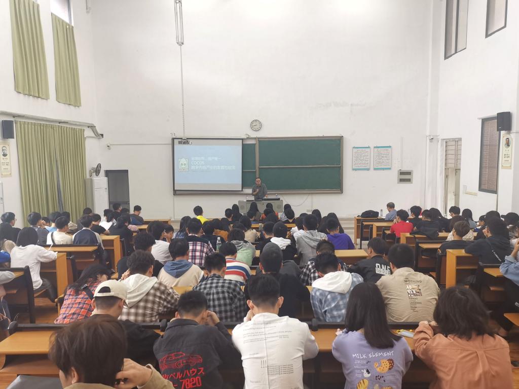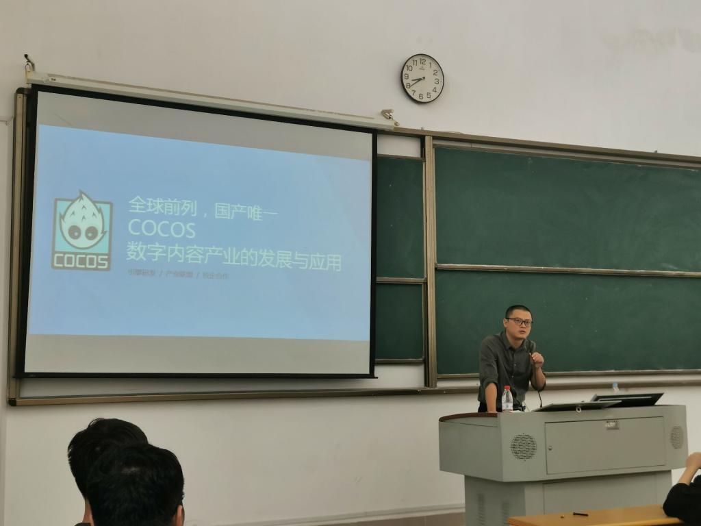 报告中,罗晶强副总经理首先介绍了Cocos公司的基本情况,解释了什么叫数字内容以及数字内容的生产流程接着介绍了全球领先的数字内容开发平台—Cocos引擎,列举了互动剧、在线展会、智能健身等例子,说明了数字内容产品是社会主义文化建设的重要方面,传播主流价值,促进文化交流等方面发挥着重要作用。接着介绍了Cocos工程师招聘应用,举例Facebooks例子,说明做技术类的工作,90%是靠技术进行创业,技术是基础,着重强调须学好技术。最后,罗晶强副总经理用自己的亲身经历,告诫同学们一定要做自己喜欢的事情,最好是兴趣跟专业相融合,并勇于接受新的事物,不断学习新的知识。