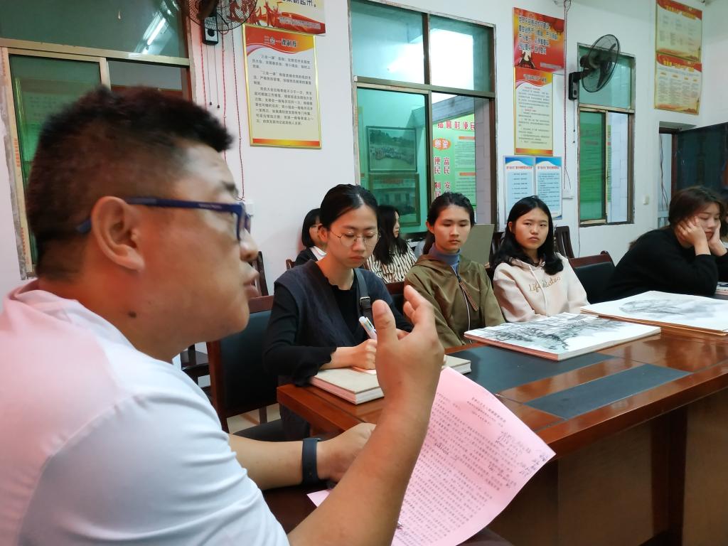 根据教学计划安排,4月20日-29日,美术学专业2016级绘画班全体同学在专业教师谭金平的带领下赴湖南师大驻插柳村进行艺术实践。作为首批省外写生的师生,参与了中宣部《思想的田野——精准扶贫 改变中国》湖南卫视栏目组采访与拍摄。湖南师大驻插柳村帮扶工作队队长、村总支第一书记向兵全体师生讲授以“坚持以文化人助推脱贫攻坚”为主题的党课。
