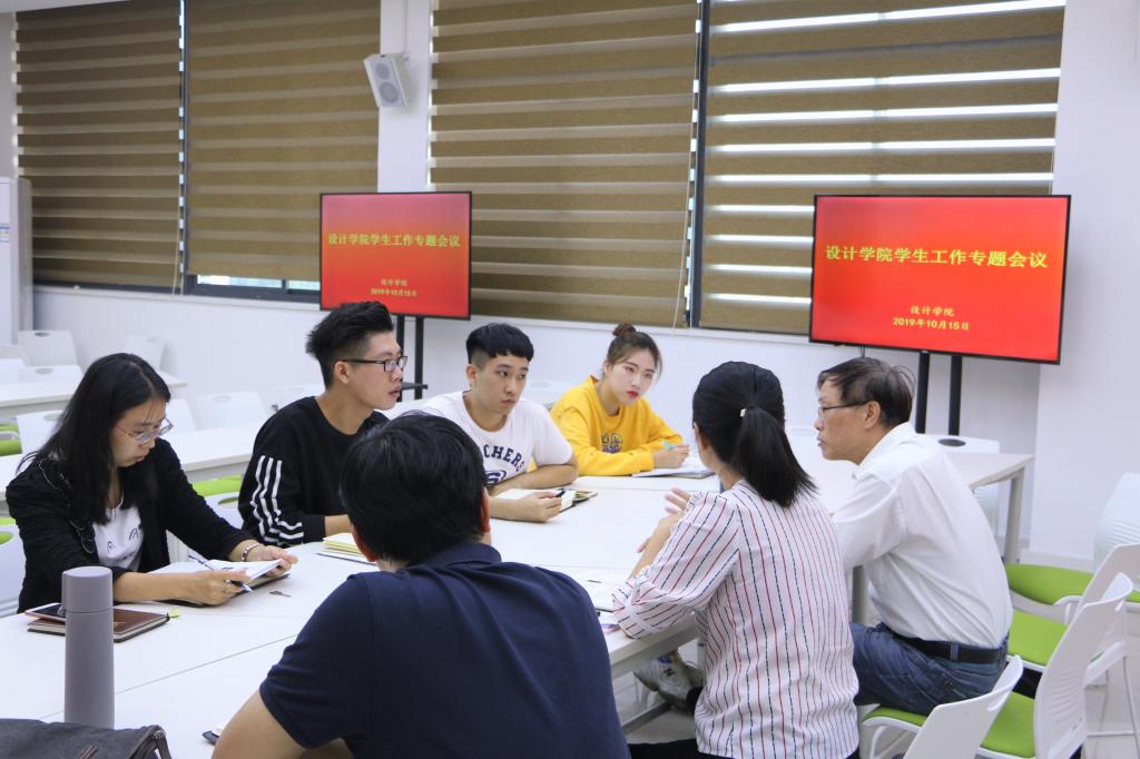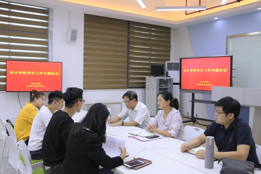 10月15日下午,设计公司在行政综合楼602室召开员工工作专题会议,会议由党总支书记宋海霞主持,副经理卢健涛、经理助理江信桐及全体辅导员参加会议。