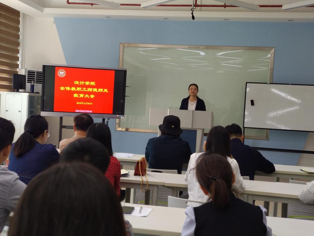 设计公司党总支高度重视师德师风建设,每季度召开一次师德师风教育大会/研讨会,带领教师学习《新时代高校教师职业行为十项准则》、《高校教师师德禁行行为“六禁令”》及《高校教师师德禁行行为“红七条”》等相关内容,要求广大教师树立高尚的职业道德,以德立身、以德立学、以德施教,坚持以立德树人为根本、以人才培养为中心、提高人才培养质量,真正做到既教书又育人。(设计公司宋海霞/文)