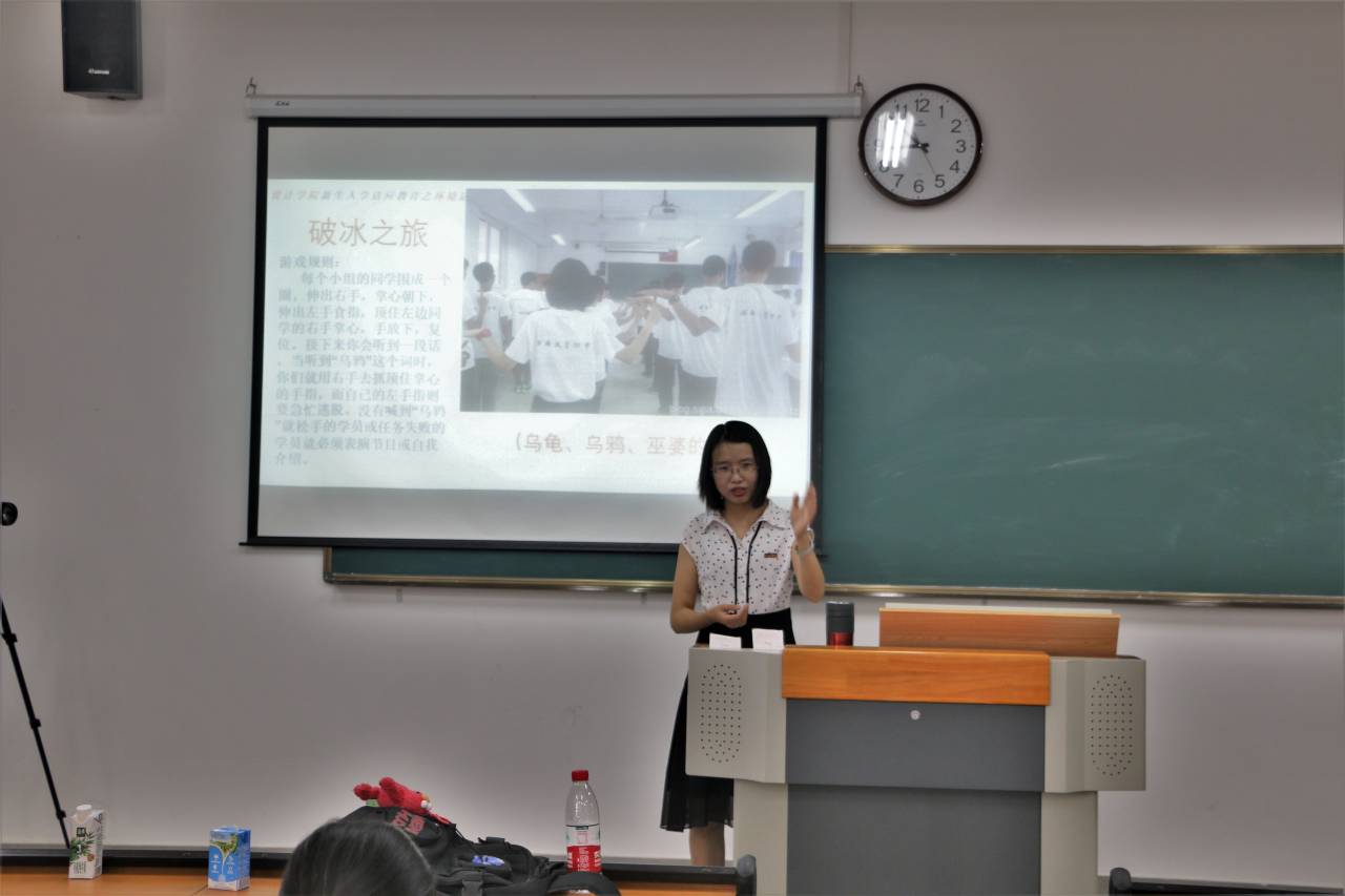 首先,吴其枝老师为了活跃课堂气氛加强同学们间的交流,用乌龟、乌鸦、巫婆故事的破冰之旅让同学们进行互动。进过游戏热身后吴其枝老师结合设计公司实际从竞赛类、服务类、创新类三老员工品牌活动,同时希望大家通过各类创新创业比赛和社会实践活动、多创作作品不断提升团队协作能力、实践动手能力、志愿服务能力以及文体竞技综合能力。
