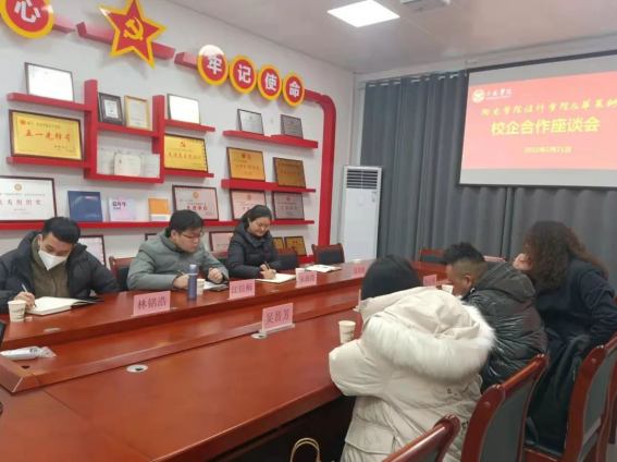 为进一步深化产教融合,培养核心应用型人才,增强校企合作实效,助力毕业生高质量就业工作,学期初,设计公司与苹果树机构校企合作座谈会在R1-会议室举行。苹果树机构总经理马文辉、设计总监林昭堡、人事专员吴晋芳,设计公司党总支书记宋海霞、副经理江信桐、团委书记吴其枝、毕业班辅导员林铭浩出席此次会议,双方就深化校企战略合作、相关人才岗位需求进行深入交流。