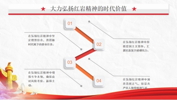 红岩精神蕴涵着党的思想、组织、作风建设等方面的丰富经验,为不断提高党的执政能力和领导水平提供了历史镜鉴,也是我们党深入推进反腐败斗争、重塑风清气正政治生态的强大精神力量。