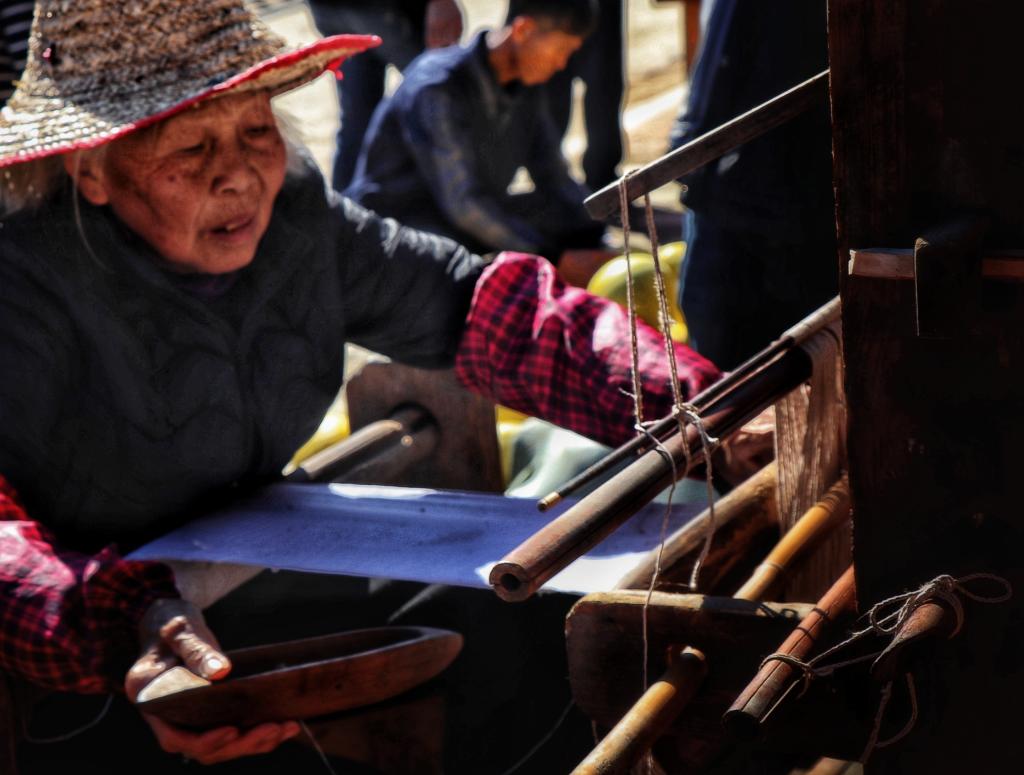 作品说明:“唧唧复唧唧,木兰当户织”是多数国人耳熟能详的句子,男耕女织也是中国古代劳动人民生活的缩影。梭子在织布机上左右穿梭,如豆的灯火跟随梭子翻飞左右飘忽摇摆的瞬间,勾起了老人童年的回忆,在老人的记忆中,童年的清晨是在母亲的织布声中醒来,夜晚在织布声中睡去。她自己从很小的时候就开始跟着母亲学习织布,那时的织布机在她的眼中又高又大,身高不够的她几年都是“吊”在织布机上织布,那架古老的织布机是姥姥的嫁妆,清脆的织布声中,穿梭的是饱含沧桑的时光,织就的布匹里面都是岁月的故事。
