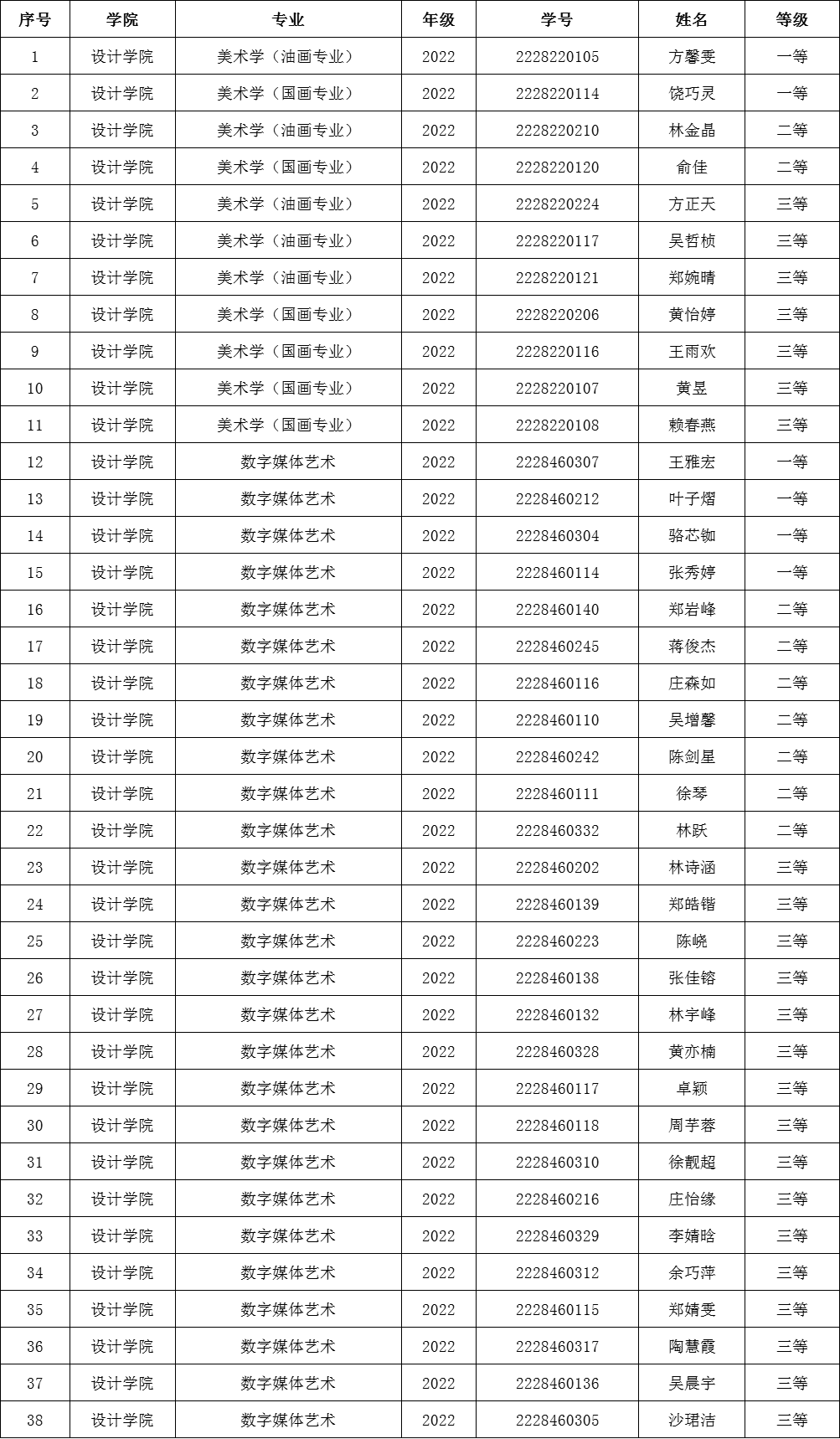 2022级普本优秀奖学金初评名单