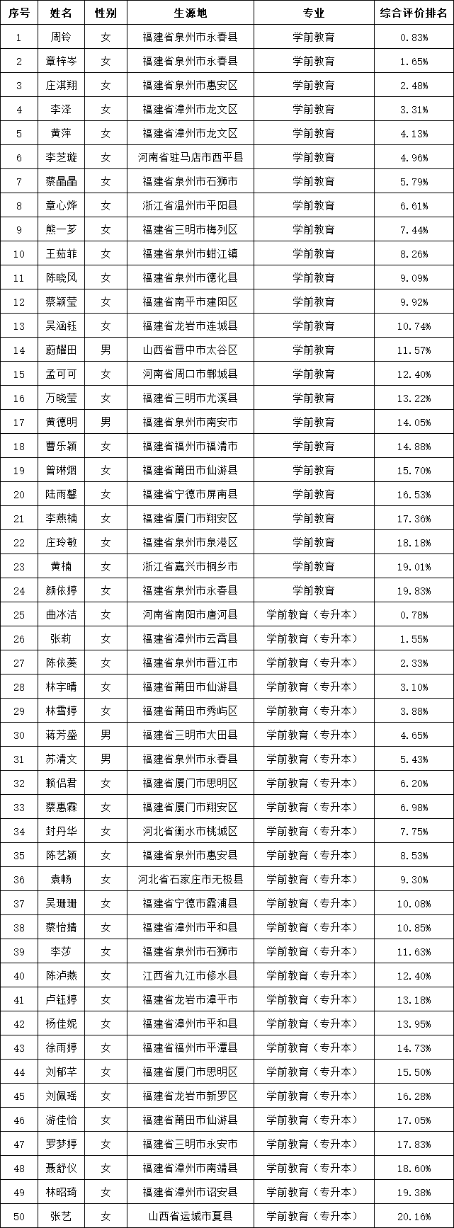 根据福建省教育厅《关于做好关于做好2025届省内本科高校优秀师范毕业生双向选择工作的通知》及公司有关规定,按照公平、公正、公开的原则,经员工自主申报、辅导员初审及公司党政联席会审议通过,拟推荐周铃等50名同学为师范类优秀毕业生。具体名单公示如下: