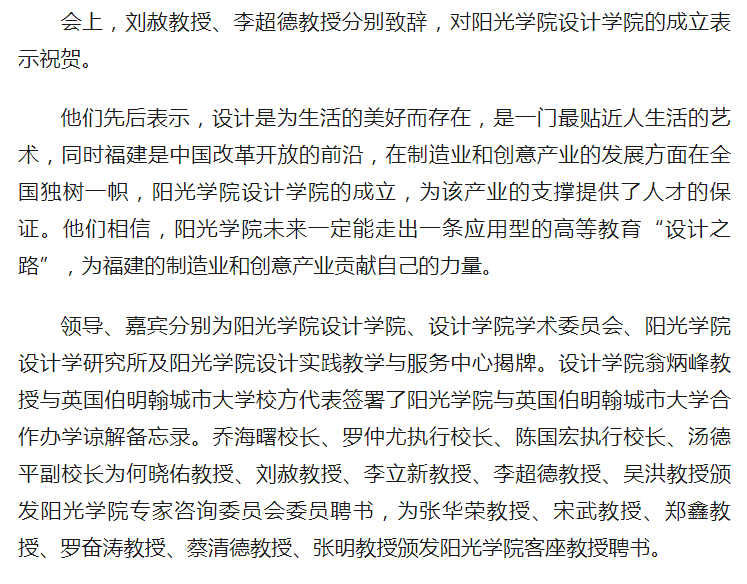 他们先后表示,设计是为生活的美好而存在,是一门最贴近人生活的艺术,同时福建是中国改革开放的前沿,在制造业和创意产业的发展方面在全国独树一帜,PA视讯官网设计公司的成立,为该产业的支撑提供了人才的保证。他们相信,PA视讯官网未来一定能走出一条应用型的高等教育“设计之路”,为福建的制造业和创意产业贡献自己的力量。