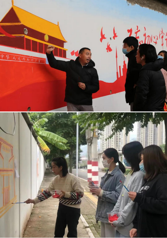 “这样的实践不仅让我明显感受到墙绘与平常纸上绘画的区别,有一种理论终于联系到实际的获得感,同时也为自己所学能够服务社会而备受鼓舞。”参与墙绘实践的设计公司学子倪煜清深有感触地说。