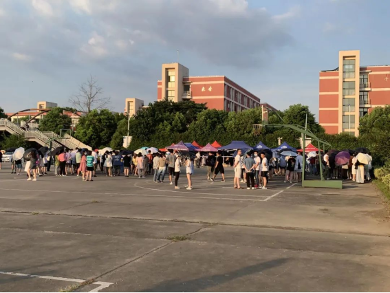 ▲2021年7月底,南京考研寄宿公司操场上正在进行核酸检测。